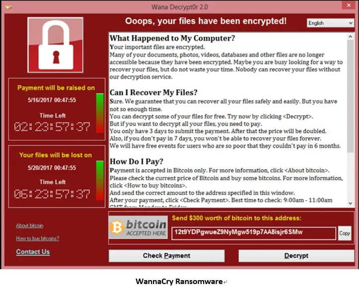 The WannaCry ransomware attack is an ongoing worldwide cyberattack by the WannaCry ransomware cryptoworm targeting the Microsoft Windows Operating System. It encrypts essential files on your Windows device and requires that you pay a ransom to unlock those files.